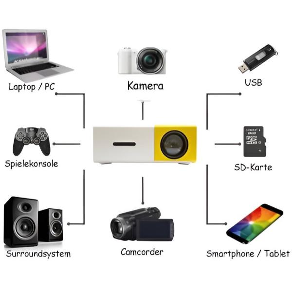 Díky několika portům, jako je USB, HDMI a AV, je tento projektor zárukou zábavy bez ohledu na to, jaké zařízení používáte.