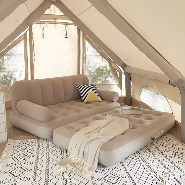 🛏️ Snadno a rychle se nafoukne pro pohodlný spánek a pak se složí do pohovky pro odpočinek.