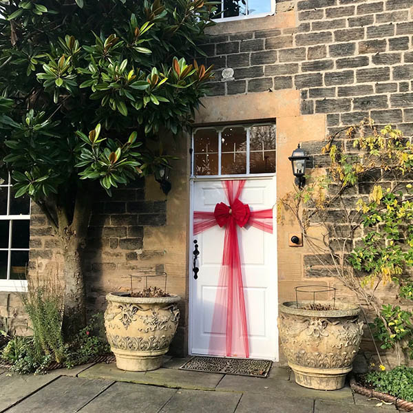Ozdobte své dveře našimi luxusními dekoracemi s mašlemi. Díky 750 cm dlouhé stuze můžete své vchodové dveře vytvarovat a dodat jim krásnou slavnostní podobu. Ať už se jedná o Vánoce, svatbu nebo oslavu narození dítěte, RUBYBOW umocní oslavu.