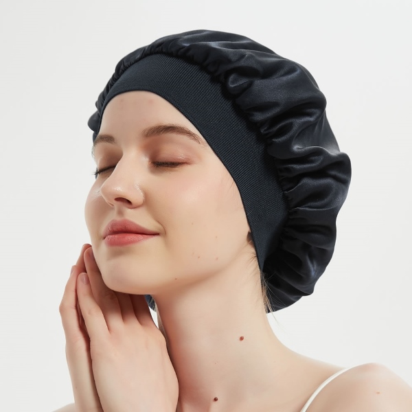 Naše čepice má široký okraj vyrobený z prvotřídní hedvábné saténové tkaniny, který zajišťuje maximální pohodlí, aniž by byl obětován styl. Široký pásek je navržen tak, aby se natáhl a přizpůsobil se vašemu účesu, a poskytuje luxusní a bezpečnou ochranu vlasů.
