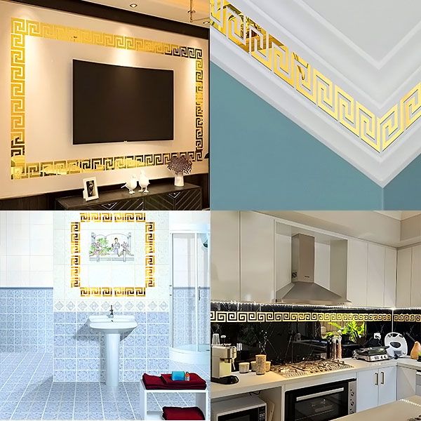 Vylepšení koupelny: Vylepšete výzdobu koupelny umístěním samolepek na stěny nebo kolem zrcadel, které odrážejí světlo a vytvářejí prostornější a luxusnější dojem.